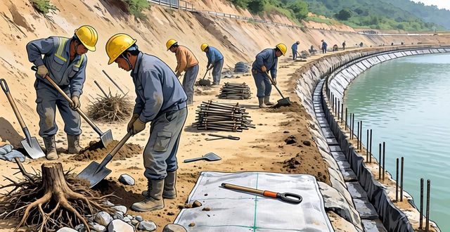 施工前必须对斜坡地基进行清理和夯实,去除树根、尖石等杂物,并开挖出锚固沟。锚固沟应沿池顶边线布置,深度和宽度各不小于0.5米,用于固定土工膜的上端。池底若为岩基,还需铺设一层无纺土工布作为缓冲层,防止膜被尖锐棱角刺破。